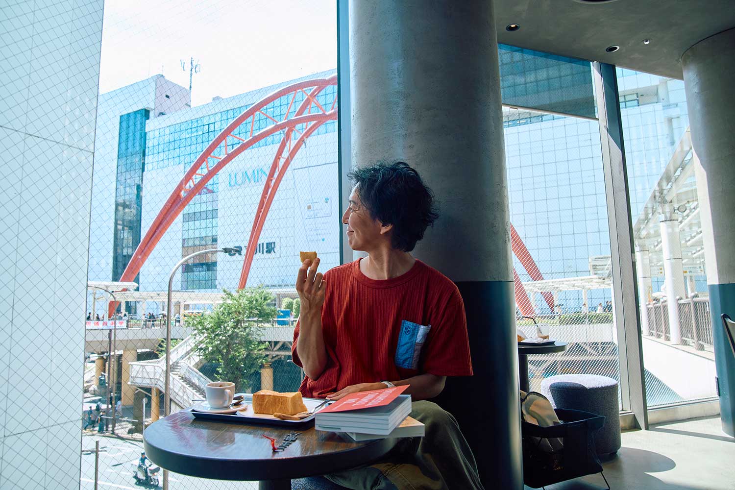 天空人の朝は早い。『JR東日本ホテルメッツ立川』の窓から駅に滑り込むモノレールを見届けたら『Klimt』へ繰り出す。砂糖をたっぷり溶かしたエスプレッソで寝ぼけた脳を起動。駅前オブジェの赤が、今朝の青空にひと際映えてら。おはよう、今日もきれいだよ……。