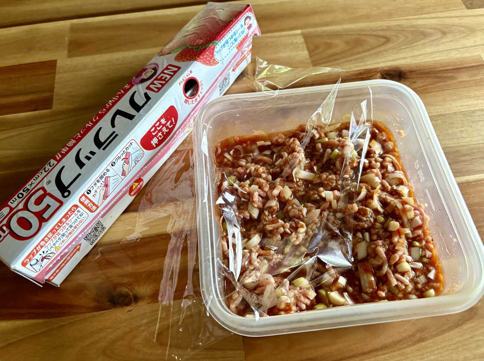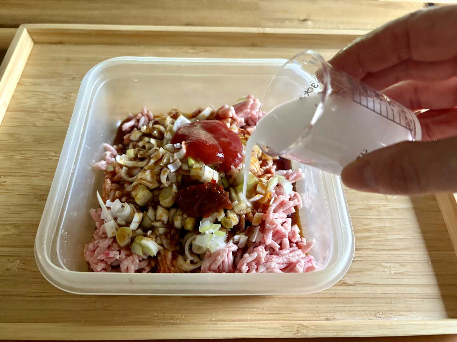 タレの具材には長ねぎとひき肉を使ってシンプルに仕上げましたが、みじん切りにしたきのこや根菜を加えるアレンジもあります。きのこはえのきやしいたけ、しめじなどお好きなものを、また長ねぎを玉ねぎにすると甘さが増します。いずれもレンジの加熱時間で火が通るように、粗めのみじん切りにしてください。