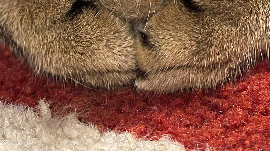 そんな全力で圧をかけてくるむくくんですが、別の投稿では意外な姿も見せています。仰向けで横になり、なんと全力で脱力しているではありませんか。その姿はまるで、疲れ切ってソファにもたれかかる人間のようでもありました。