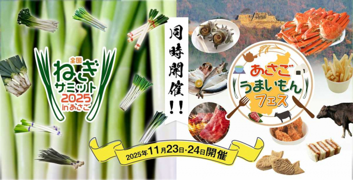 また11月23日に解禁日を迎える特産・岩津ねぎを祝う「全国ねぎサミット2025inあさご」も同時開催。岩津ねぎをはじめ全国のねぎ産地が集結するほか、但馬や壱岐市の食材や加工品が楽しめるグルメイベントです。