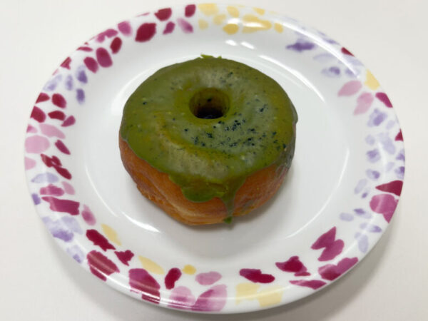 抹茶が練り込まれたグレーズがかかったドーナツ。抹茶本来の苦味も感じる甘さ控えめのフレーバーです。
