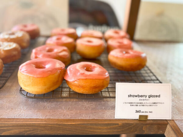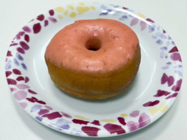いちごの果実を使ったグレーズが掛かっているドーナツ。いちごをそのまま食べているようなフレッシュな酸味が特徴です。