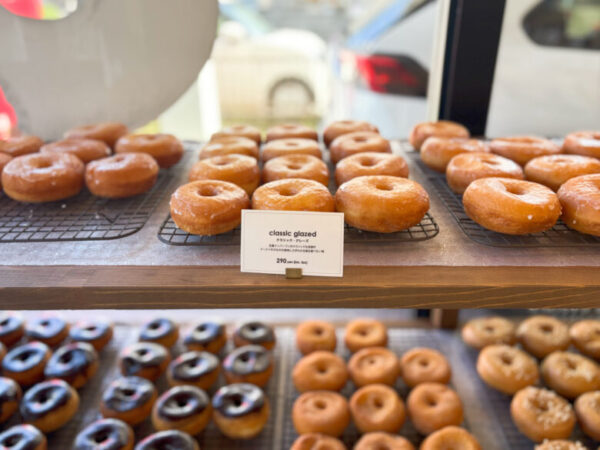 店内に入るとふんわりと甘い香りが鼻をくすぐります。 たくさんの種類のドーナツが並び、目移り必至!