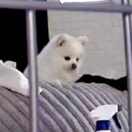 TikTokアカウント「hkev_111224」の投稿主さんは、『ハク』ちゃん、『イヴ』ちゃんという2匹のビションフリーゼを飼っています。この日、投稿主さんがトイレに入ったときのこと。まだ小さい赤ちゃんの様子が気になり、ペットカメラで確認してみたそうです。すると、そこに映っていたのは…。
