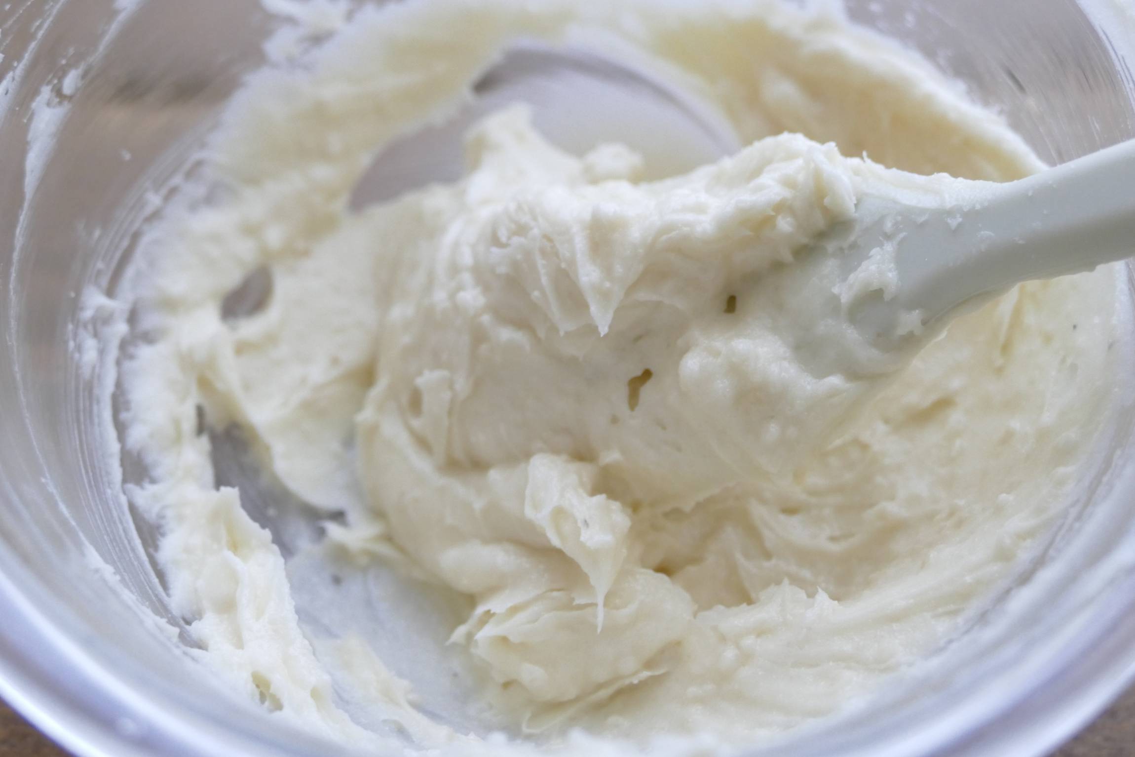 バターがやわらかくなるまで室温で30分から2時間置き、ヘラで練ってクリーム状にします。時間がない場合は電子レンジ500Wで5秒ずつ、様子を見ながら加熱します。