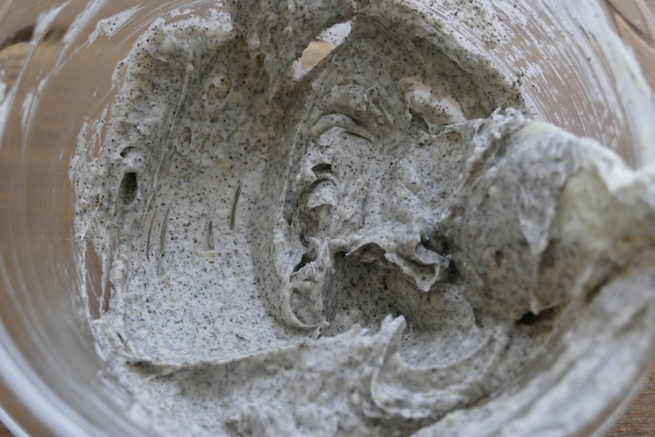砂糖を加えて砂糖の粒がなじむまでヘラでよく練ります。