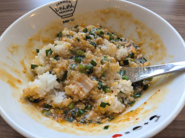 麺を食べ終えたら“ごはん”をダイブ♪しっかり混ぜていただきます。”ごはんと合う”をコンセプトに作られているので相性は抜群!食べ進める手が止まりませんでした。