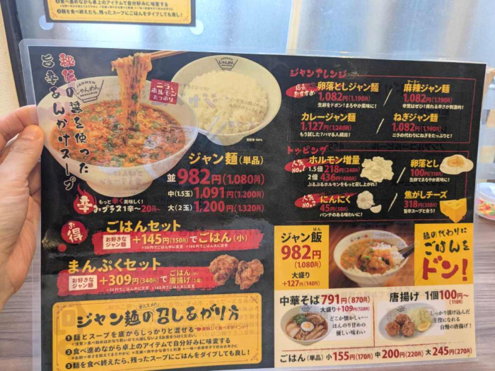 「麻辣ジャン麺」や「カレージャン麺」などのアレンジメニューも気になりますが、今回は基本の「ジャン麺」に「ごはんセット」をつけたものを注文しました。