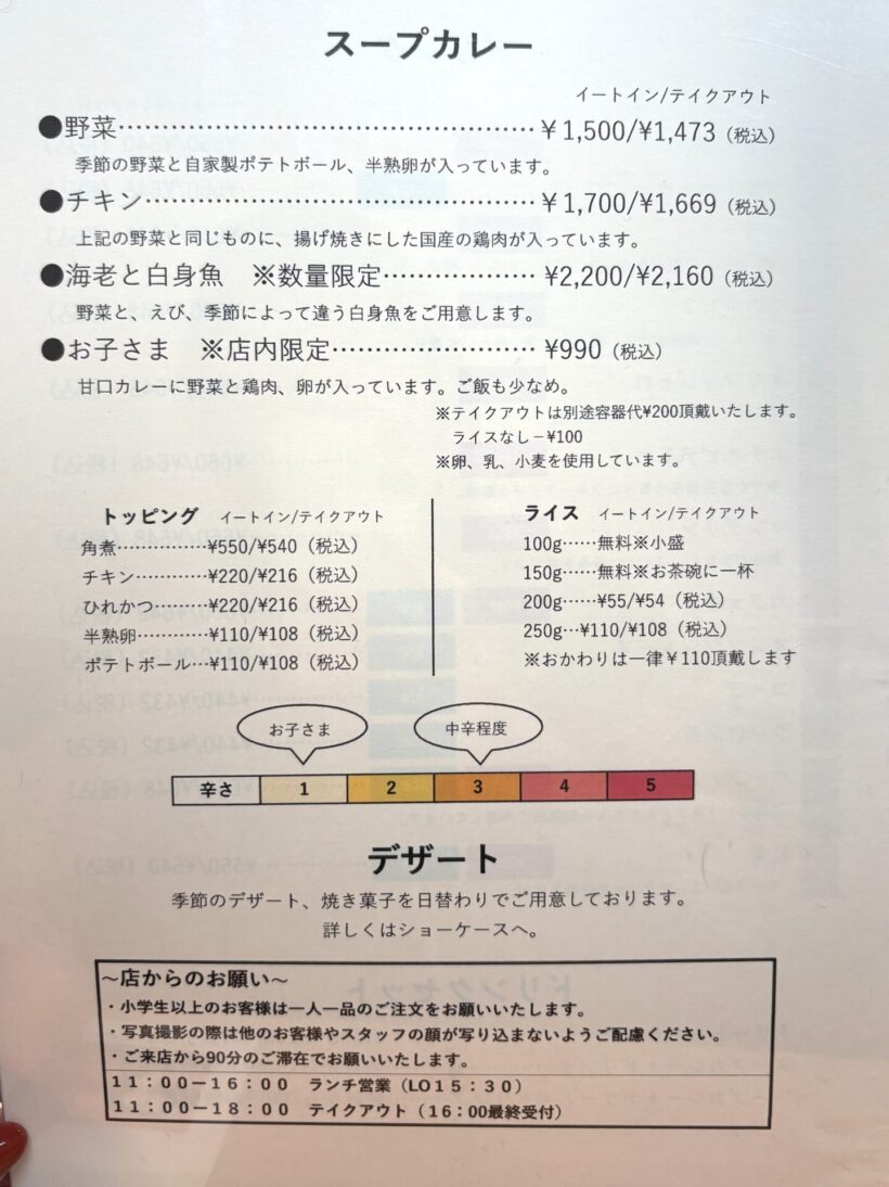 最後にひと言申し上げるなら、この店は「スープカレー」と銘打ちながら、その背後に和食の技と出汁文化を隠し持つ、いわば「割烹の変奏」である。寒さの増す季節、体を温め、舌を満足させる一皿を求めて足を運ぶ価値は、十分にある店だ。