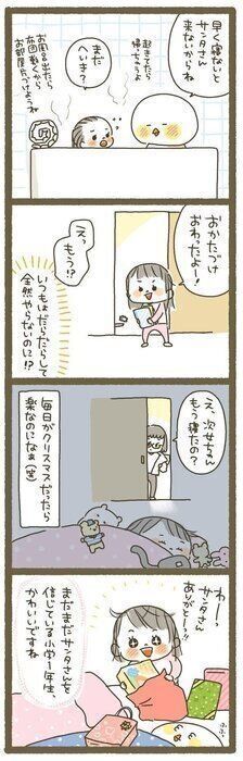 「サンタさんは世界中の子どもたちにプレゼントを用意するから、もう今からじゃ間に合わないんじゃないかなぁ。ほしいものが決まってるならもっと早くお手紙書かないとね。サンタさん今年は何をくれるんだろうねぇ」と言うと、長女もやっと察したらしく、次女も納得してくれました(笑)。