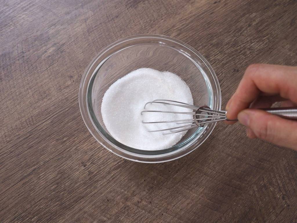 グラニュー糖にアガーを入れてよく混ぜます。