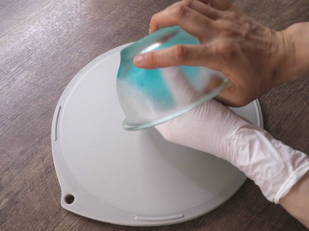 素早く容器に移します。