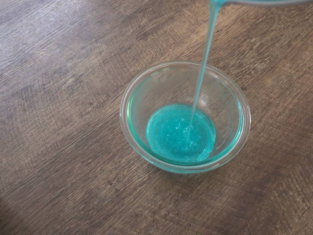 いろんな色の琥珀糖を作りたい場合は1回ずつ分けて作ってください。固まりが早いので後入れしている間に固まってきてしまい上手く混ざらなくなってしまいます。また、固まりを崩してしまうのできれいに固まらなくなってしまいます。