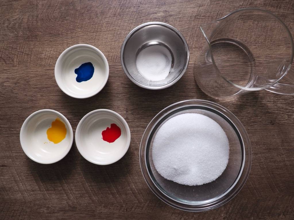 色がついている砂糖でも作れはしますが、色がついていると、琥珀糖のようにきれいな色を付けたい場合は不向きです。上白糖でもできますが、見た目にさほど差はありませんがグラニュー糖よりもねっとりとした甘さに仕上がります。