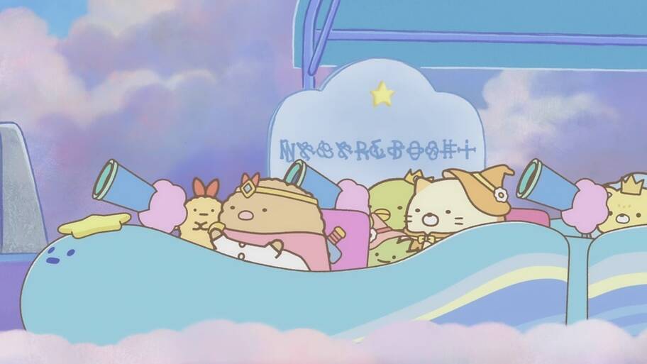 ジェットコースターについているバズーカで眠っている星を目覚めさせようと⼒を合わせるすみっコたちは果たして無事に「みずのしんでん」にたどり着くことができるのか…!?