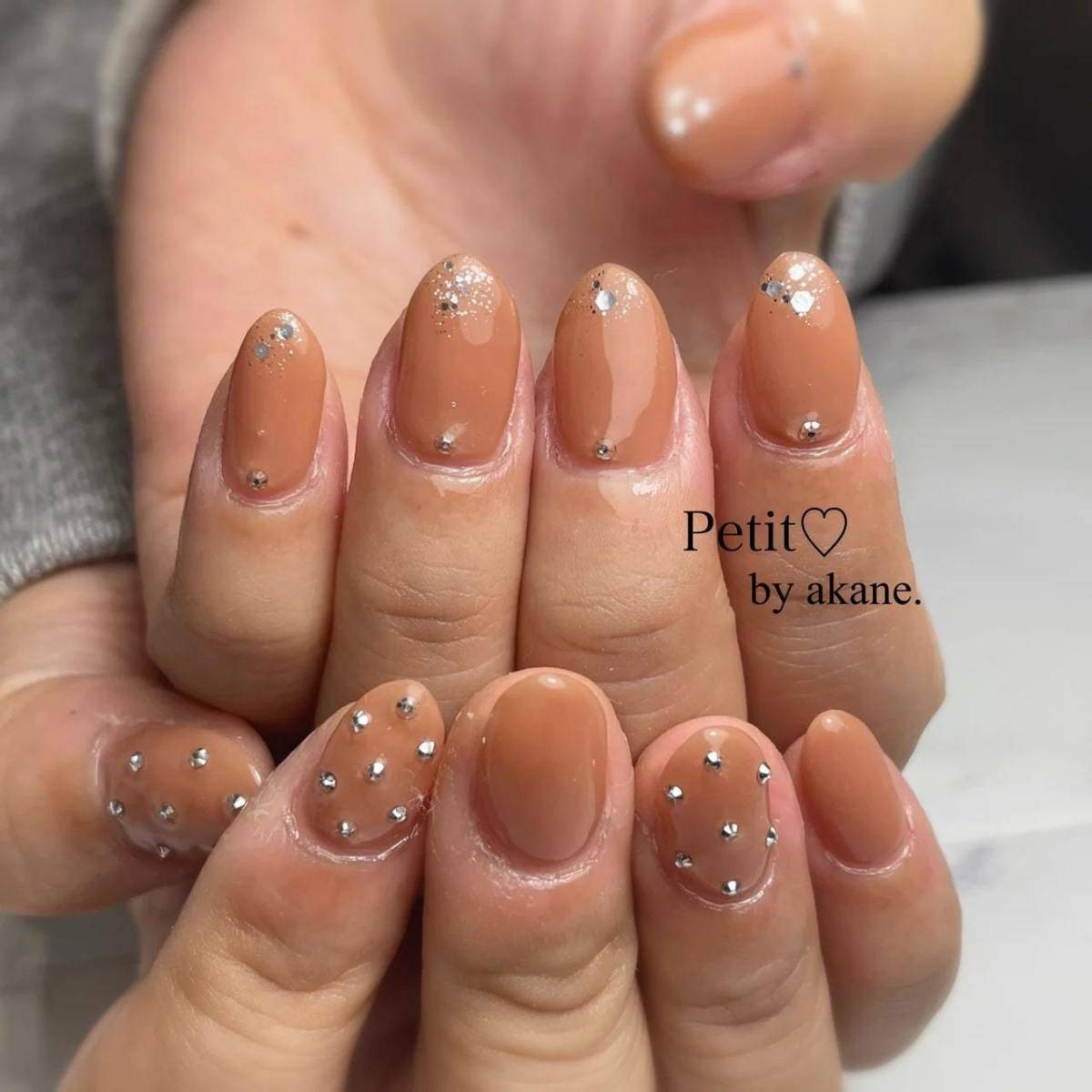 【秋編】指が長く見えるネイル▶︎ストーンのドット柄が大人可愛い