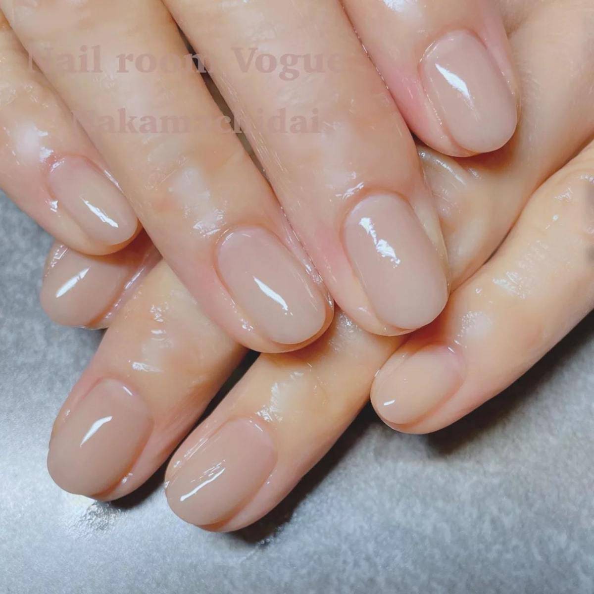 シンプルなピンクベージュのワンカラーネイルなら、指が長く見えること確実♪
