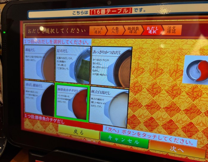せっかくなので新商品のお出汁を注文。タッチパネルをいじりながら改めてメニューを見ていると……