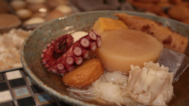 一般的には、香りのよいカツオだしのスープと太めでしっかりとした麺が特徴ですが、「ちゃんぷる」のソーキそばはだしをカツオではなく、昆布からとっているのだそう。これも、昆布の利用が根付いた富山の食文化とのかけ合わせを楽しむ黒田さんのアイディア。
