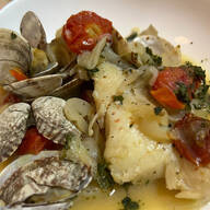 新鮮な魚介の刺身や野菜のスライスとカルパッチョにすることで、サラダ感覚でさっぱりと食べられる人気メニュー。海ぶどうのプチプチした食感も楽しめます。