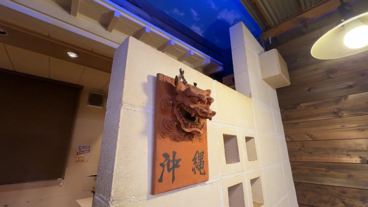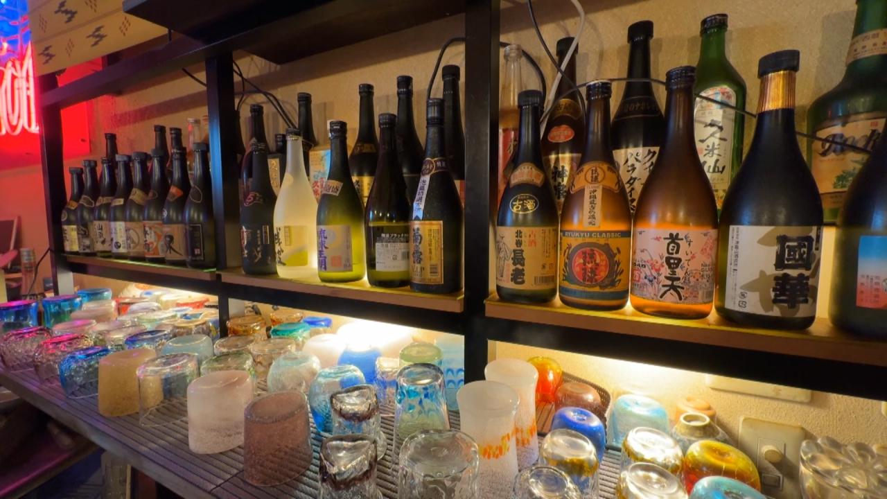 店内は落ち着いた雰囲気で、カウンターに並ぶ沖縄の地酒に琉球ガラス、オリオンビールのポスターなど、そこかしこに沖縄の雰囲気や空気が感じられます。