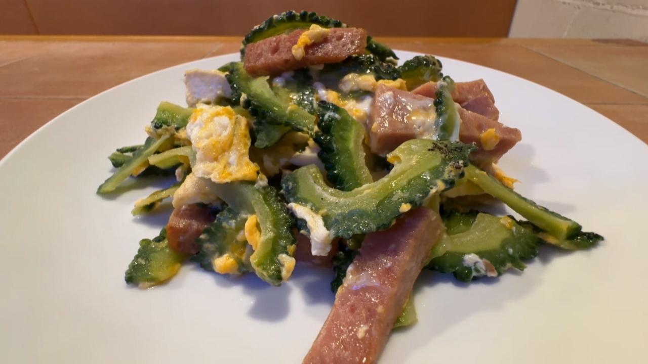 ゴーヤーは、刻んだあとにしばらく水に漬けておくと苦みが抑えられるのだそう。