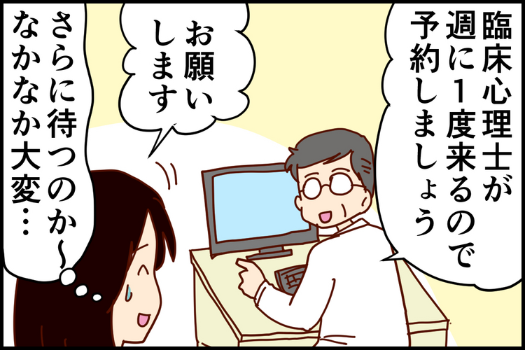 そして、ついに迎えた初回の診察。やっと専門医に診てもらうことができます!その日の診察で早速、「発達検査」と「知能検査」を受けてはどうかという提案を受けました。検査で得意不得意が分かれば今後の困りごとへの対応も少しはやりやすくなるかも……と思ったのと、次女本人もぜひやりたいということだったので、1ヶ月後に発達検査と知能検査の予約を入れました。