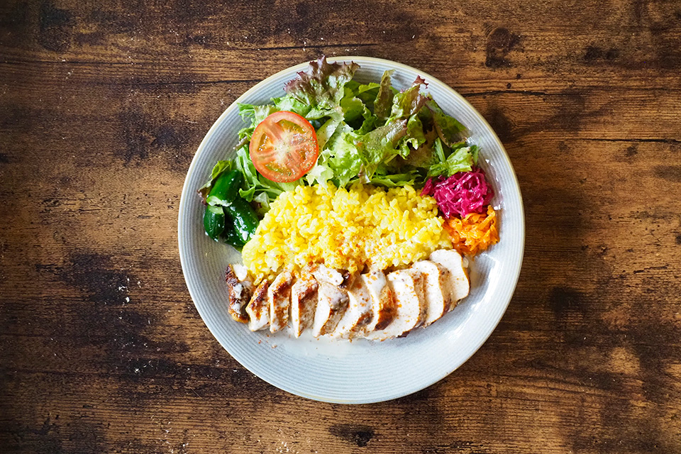 錦澤さん:イチオシは、オーバーライスです。数種類のスパイスで味付けしたチキンとお野菜、ターメリックライスをワンプレートにして、ヨーグルトソースで召し上がっていただきます。「彩りがきれい」と喜んでいただくことも多いです。