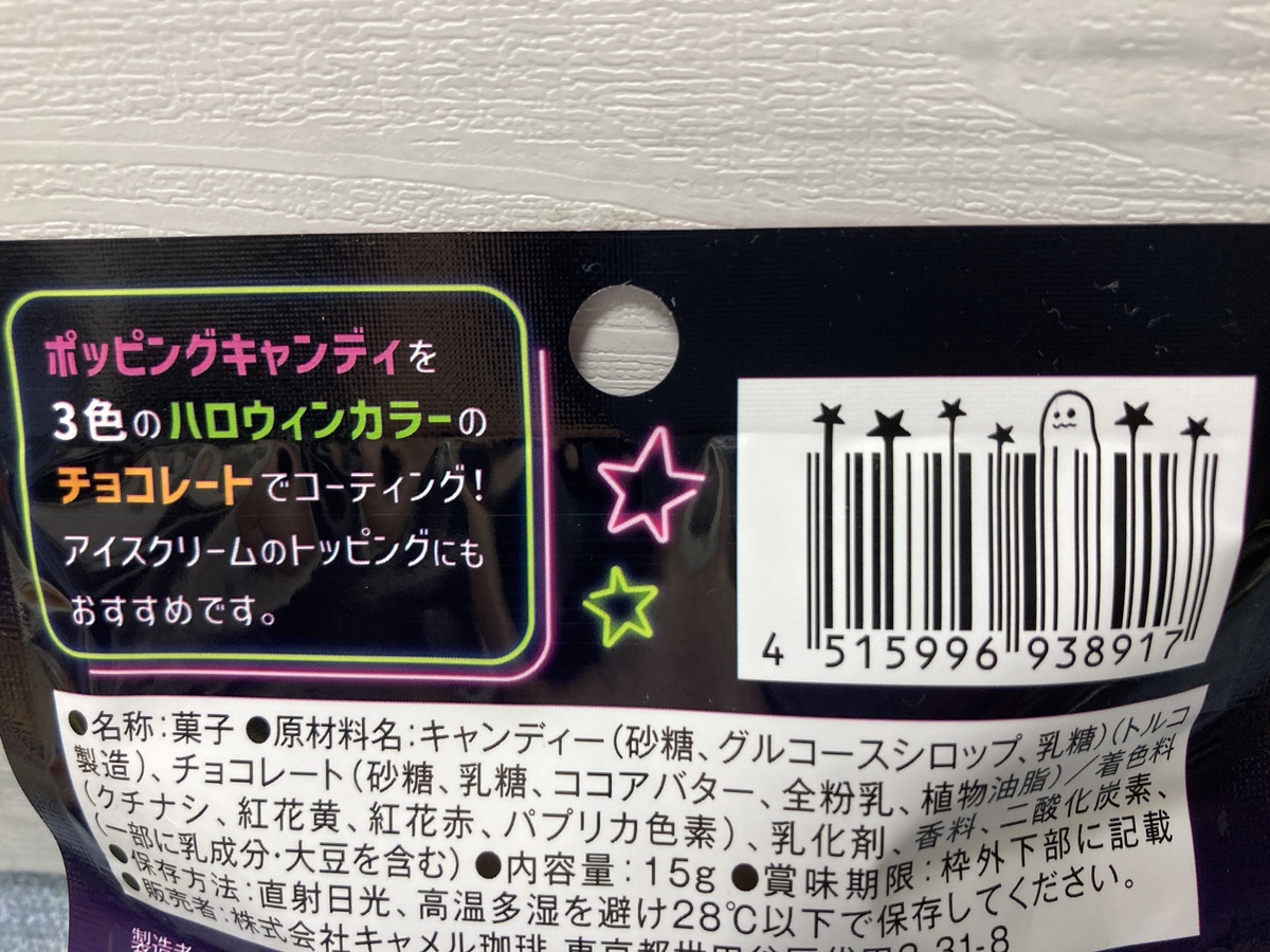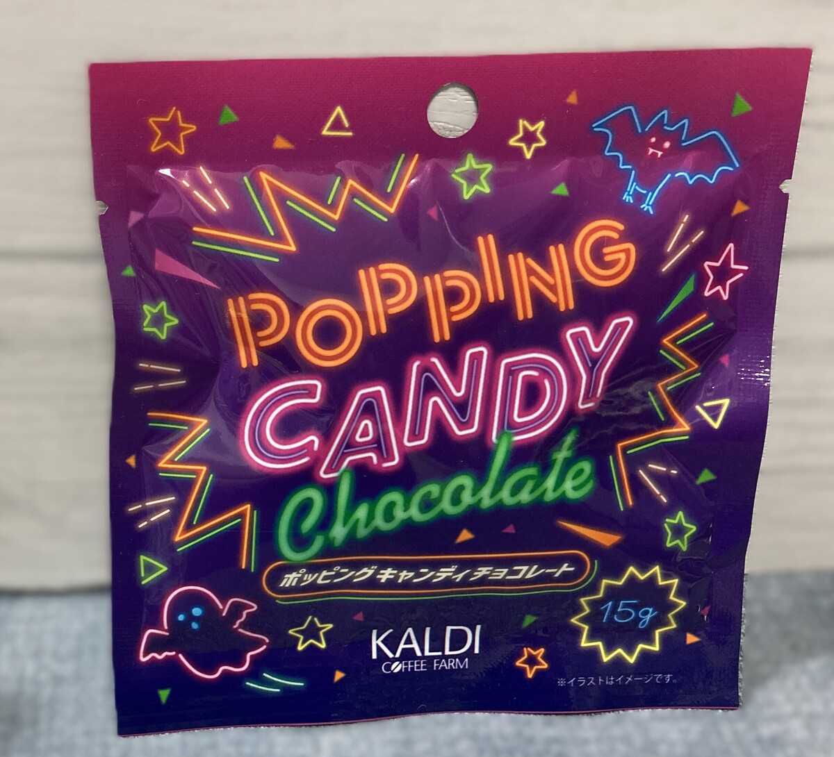 カルディで見つけた『ポッピングキャンディチョコレート』(税込292円)は、見た目も味も楽しいハロウィンにぴったりのおやつ。