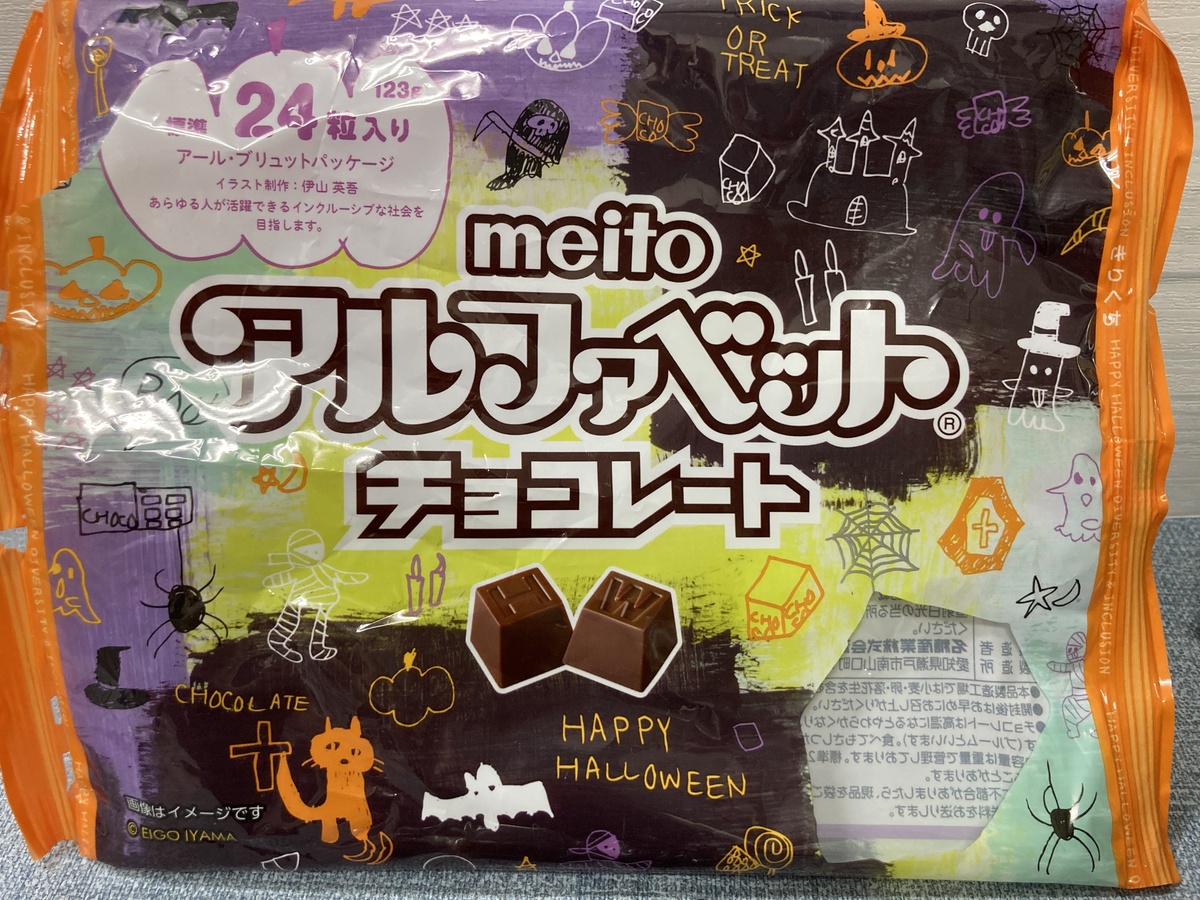 昭和45年生まれのロングセラー『アルファベットチョコレート』にも、今だけのハロウィン限定パッケージ(税別348円)が登場。