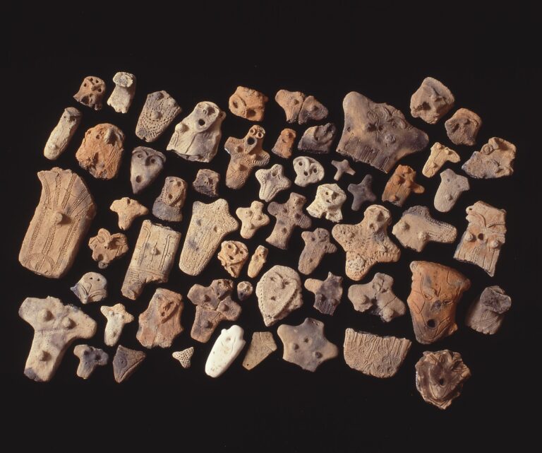 土版は祈りの道具と考えられるもので、粘土で作られた平たい板に幾何学的な文様が施されたり、顔のようなものが表現されたりすることがあります。