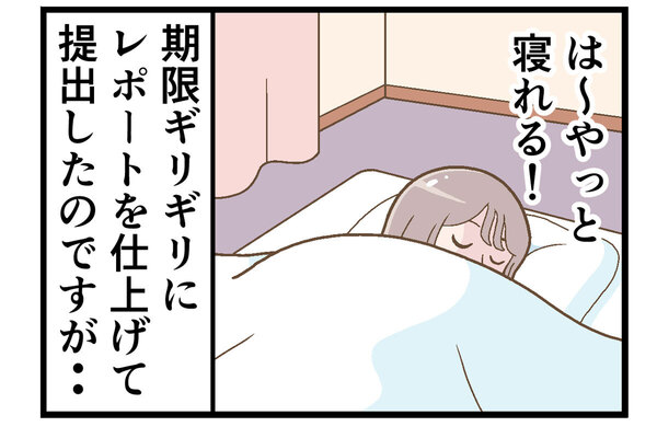 徹夜でなんとかレポートを仕上げ、夜中に提出した私。寝不足と安心感でそのまま爆睡。だけど後日、先生の一言で全てが吹き飛んだ──。