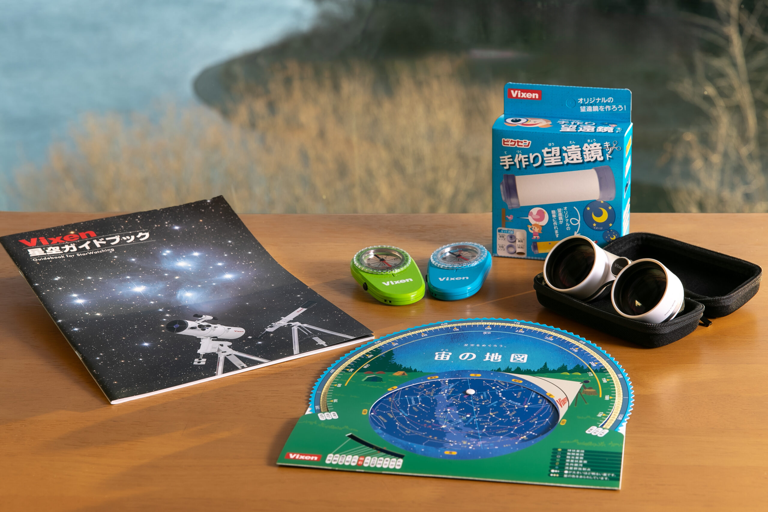 【内容】:星座早見表、コンパス、星空ガイドブック、手作り望遠鏡キット、星空観察専用双眼鏡付き ※双眼鏡はお持ち帰りいただけません。