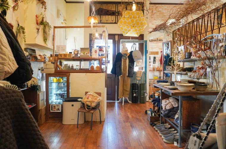 店内に入ってすぐ左の部屋には、手作り作家の雑貨やオリジナルアイテム、店主とスタッフがセレクトした衣料品や食器などを販売する雑貨店があります。