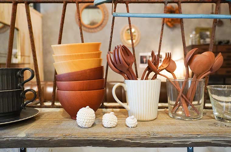 ここでは、どんな暮らしにもなじみやすいシンプルなデザインや、小さな子どもがいる家庭でも使いやすいような割れにくい素材のものを中心に店主自らセレクトした雑貨を、手ごろな価格で販売しています。おしゃれな雑貨や食器は、誰かにプレゼントしても喜ばれそう。贈る相手のことを思いながら買い物をすると、より楽しみが広がりそうですね。