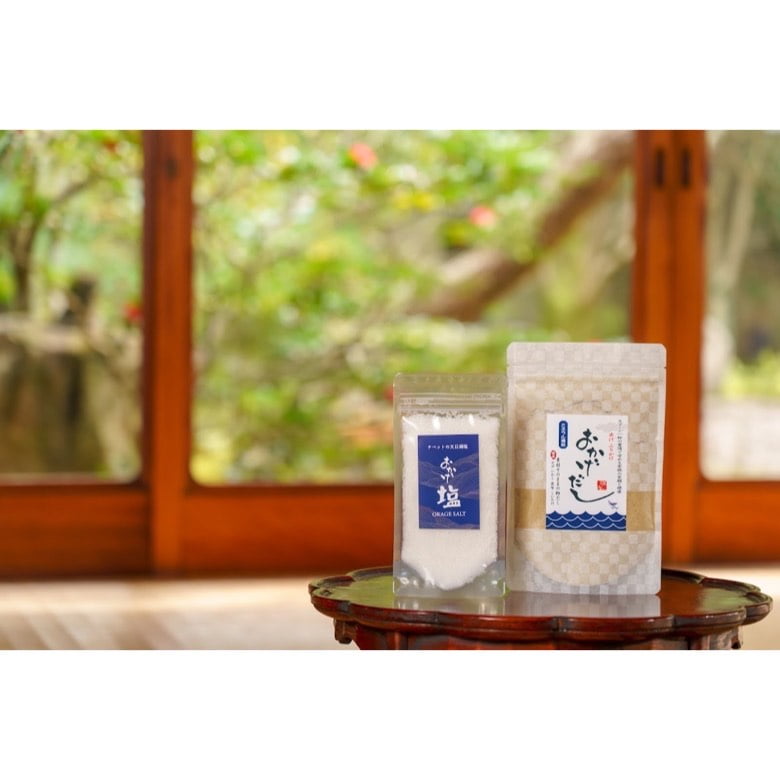 太子町「フリーダムジャパン」の「おかげだし」(80g/1,330円)、おかげ塩(150g/540円)