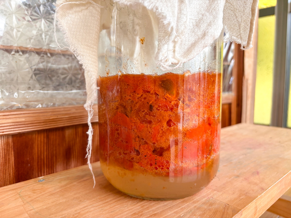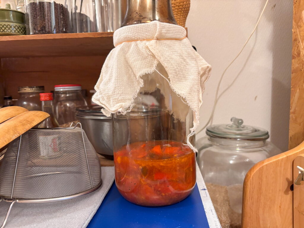 もうひとつは、”呼吸ができるようにしておくこと”。瓶の蓋を締め切ってしまうと、発酵途中で出るガスが溜まって、蓋が飛んでいってしまうかもしれません。蓋の代わりに布などを被せておくと良いそうです。