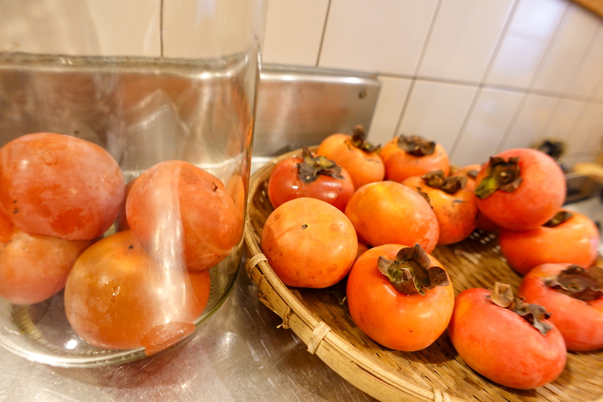 ひとつめは、柿を”洗わないこと”。これは、柿の表面についている酢酸菌や酵母菌が発酵にとても必要だからだそうです。