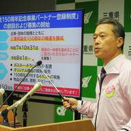記念宣言書に署名する森智広市長(左)ら=四日市市提供