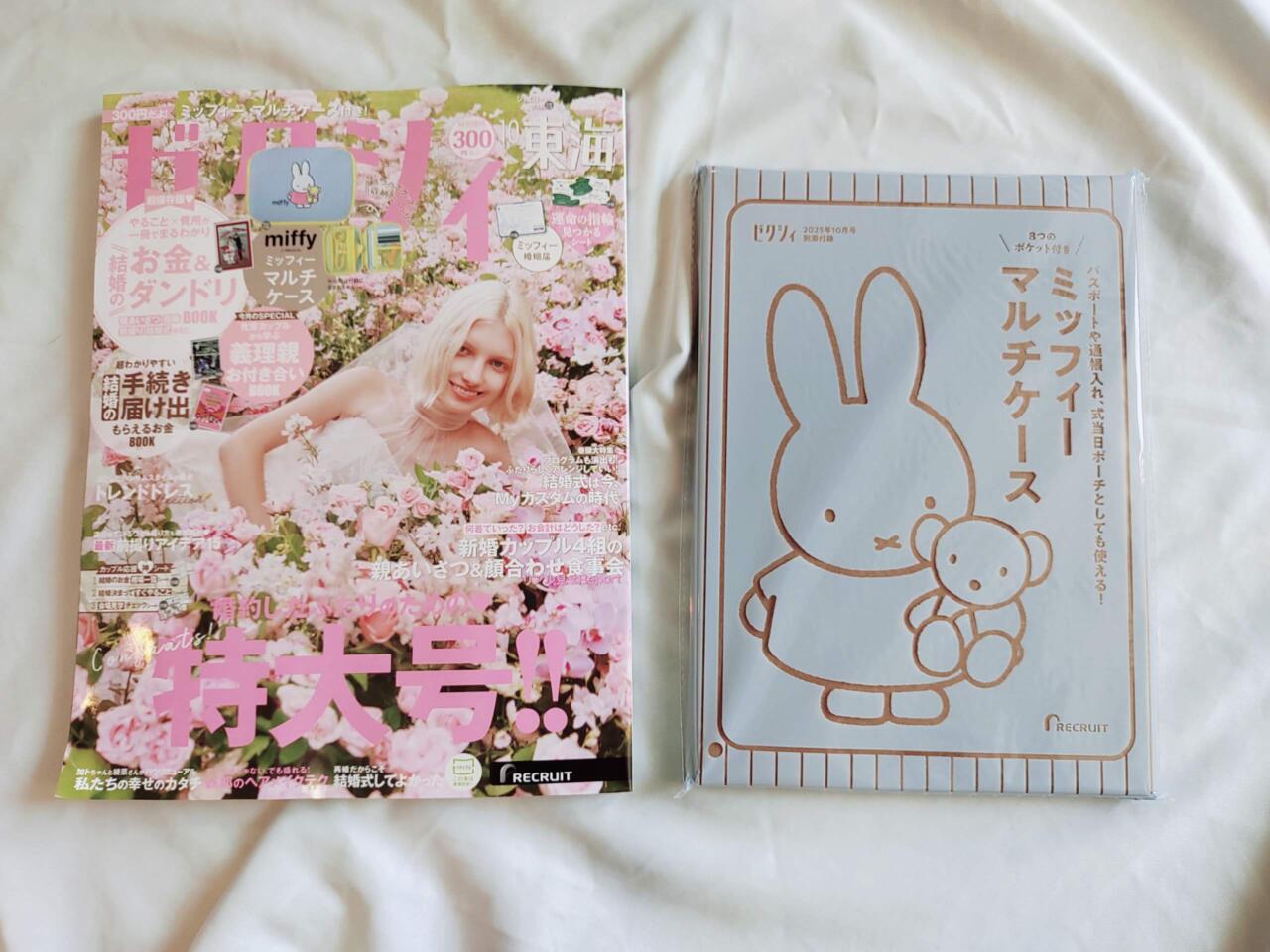 2025年8月22日にリクルートより発売された結婚情報誌『ゼクシィ』10月号。今月号の付録は、ミッフィーの「マルチケース」です。