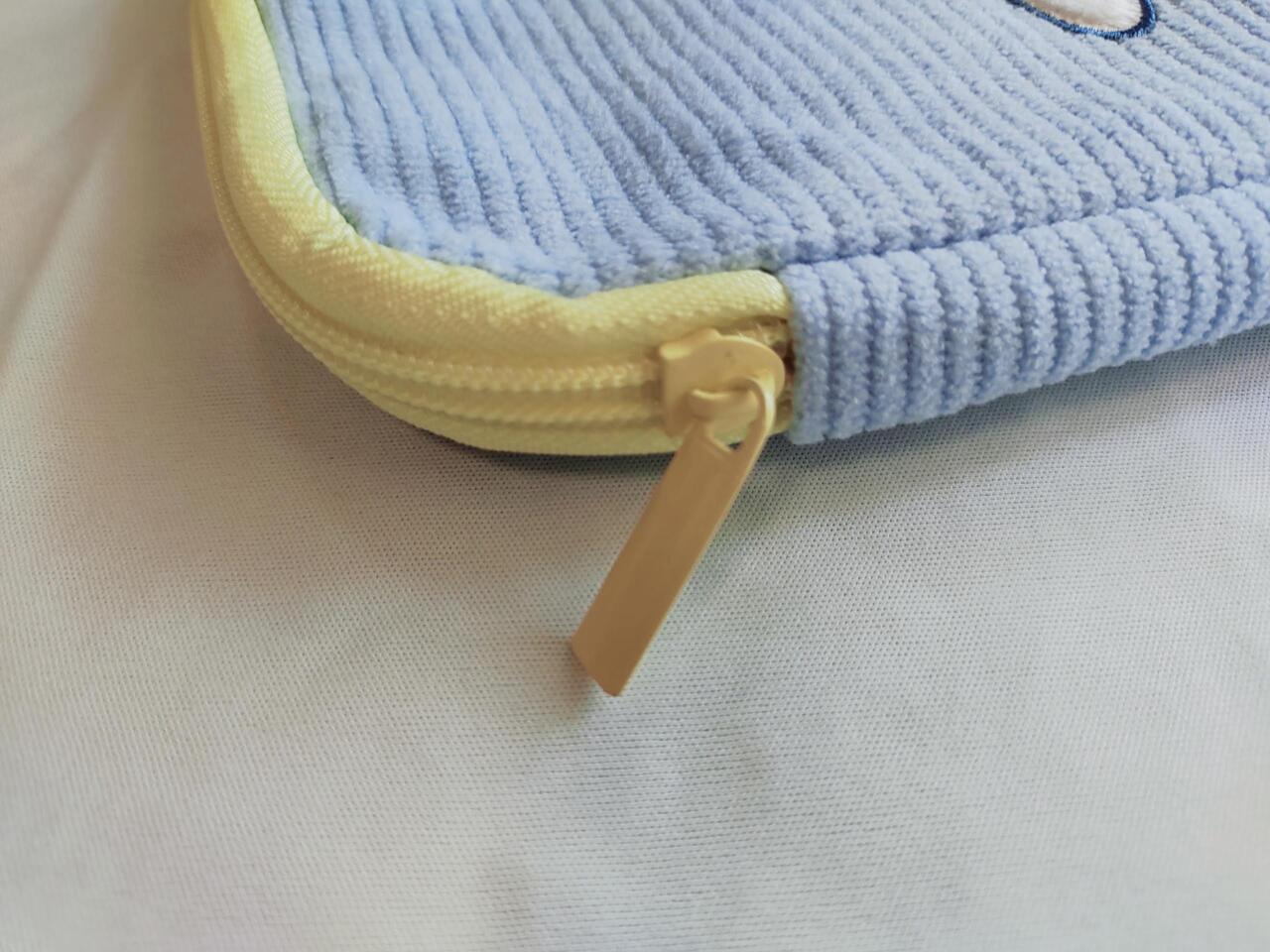 今回の付録「マルチケース」は、縁取りがパステルイエロー、生地は爽やかなブルーで、中央にはピンクの洋服を着たミッフィーの刺繍入り。クマのぬいぐるみを抱えるミッフィーのきょとんとした表情がとっても愛らしいデザインです。
