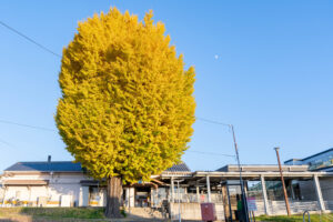 11月30日、JR新田駅前にある宇治市名木百選のいちょうが見ごろ!推定樹齢約200年【京都府宇治市】