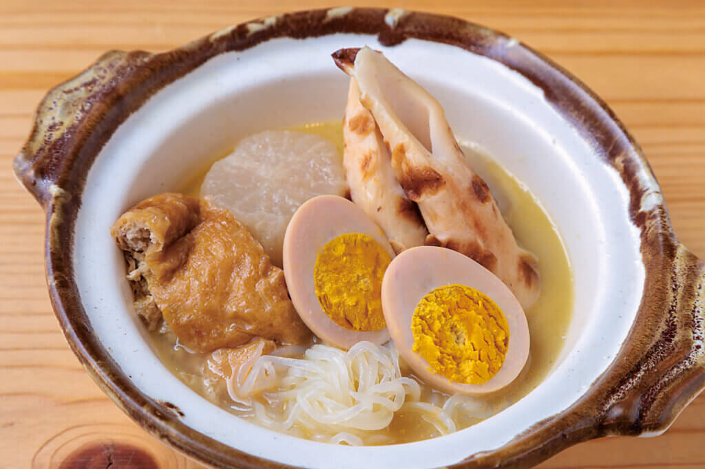 おでん五種盛り合わせ(1,090円)。鶏ガラでとったスープでじっくりと煮込んだ自慢のメニューです。