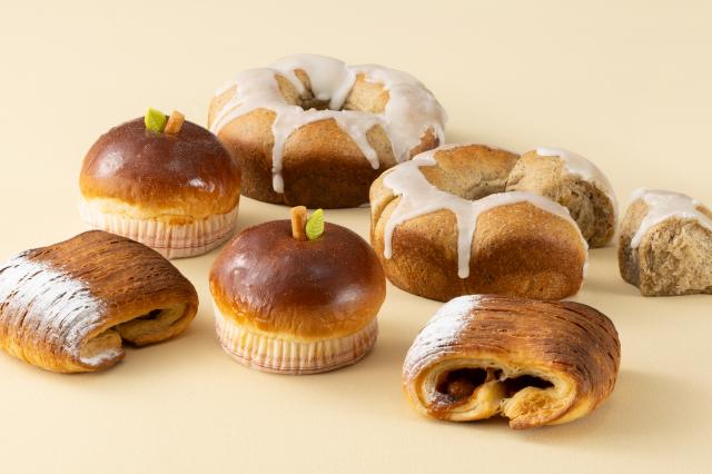 マンスリーブレッドには、りんごと紅茶のスイートリングやキャラメルナッツのパンなども登場。秋の手土産にも喜ばれそう。