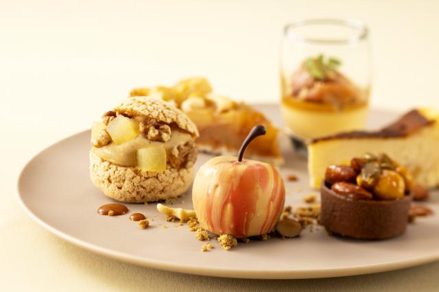 りんごと胡桃のシュークリームや、キャラメルりんごヴェリーヌなど、ホテルパティシエが手がける多彩なスイーツをブッフェスタイルで楽しめます。