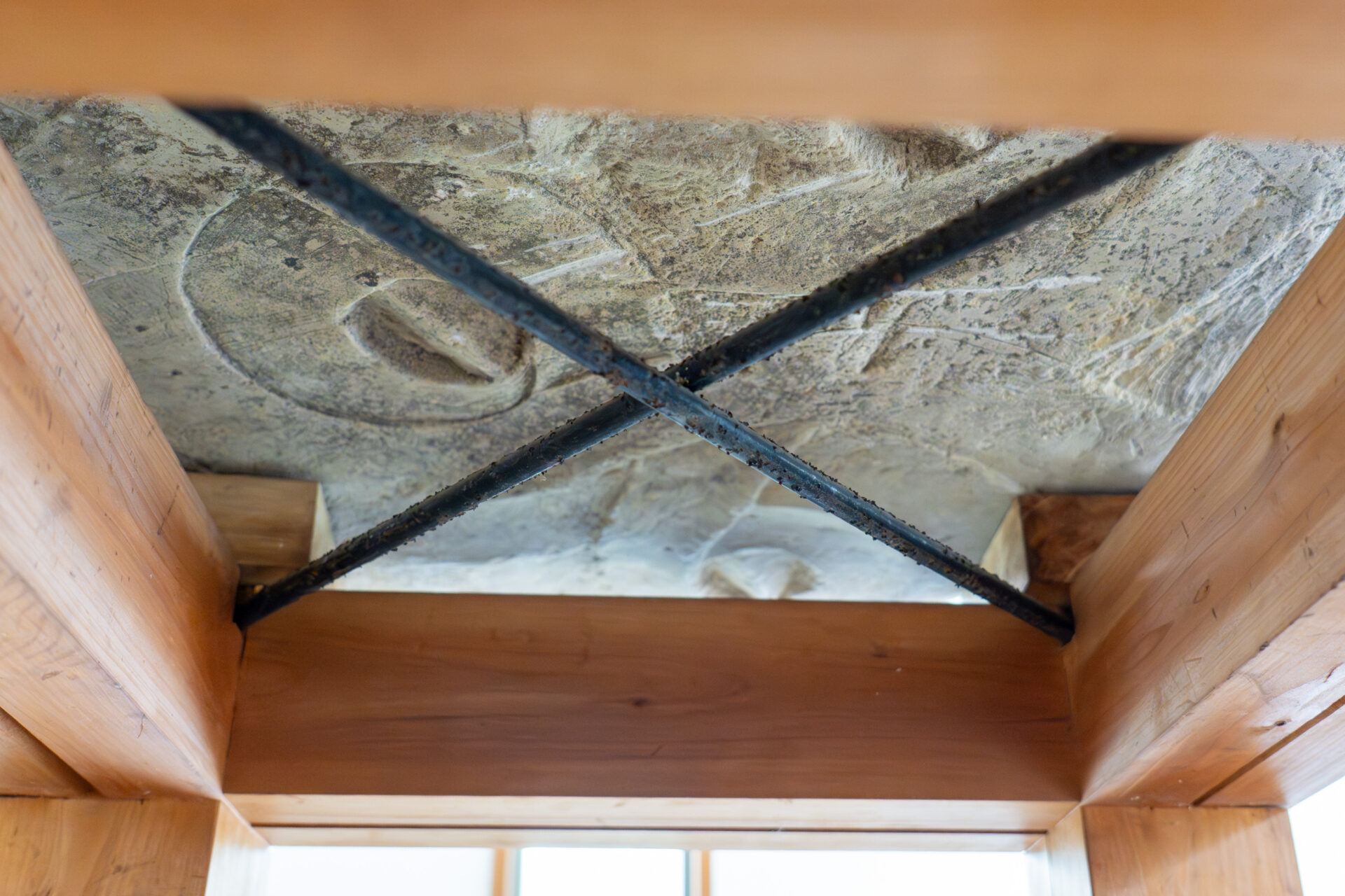 中央の丸い部分には、顔のように見える彫刻が施されています。