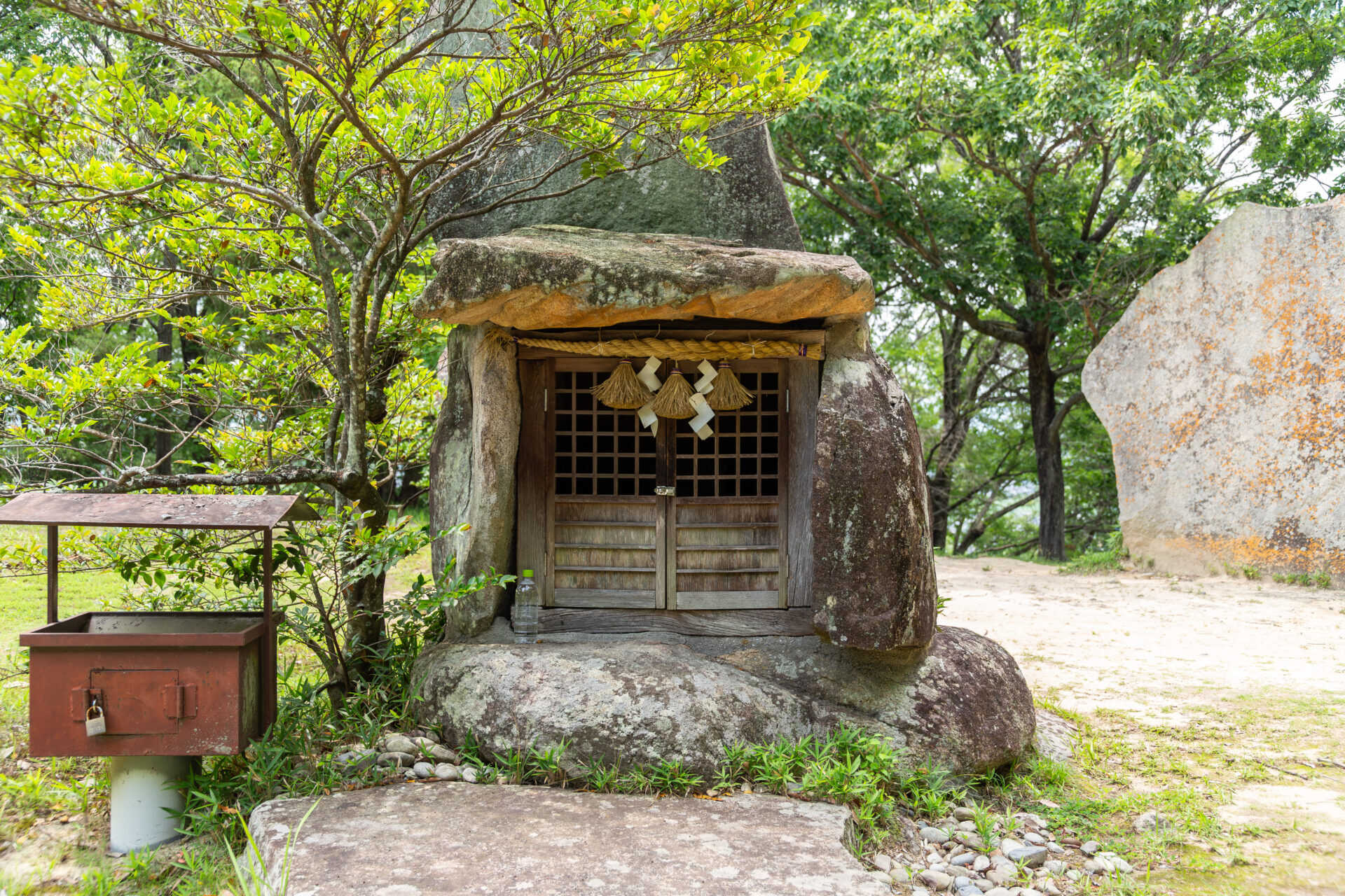 弥生時代の最大級の規模を誇る王の墓「楯築遺跡」は、大きな立石が印象的です。また、「旋帯文石」は、神秘的な文様が施されていて、見た人の想像力をかき立てます。普段、「旋帯文石」は収蔵庫におさめられていて、公開されていませんが、収蔵庫の横の小窓からご神体を拝めます。