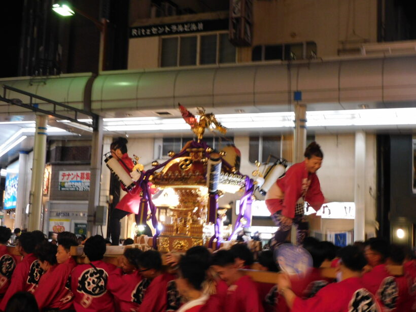 午後8時50分からは、「越後長岡慰霊神輿渡御」と悠久太鼓の共演が厳かに執り行われた。まちを復興してきた先人たちへの感謝と慰霊の想いを込めて、20団体・約2,500人が各々の神輿を担ぎ、力強く大手通を練り歩いた。担ぎ手の一人として、神輿渡御に参加した長岡青年会議所の南雲健一さんは、「いろんな人たちとこの活力を通じて、友達になってもらいたい。こういう場で生まれた繋がりが、新しいものを生み出す原動力になる」と、神輿の担ぎ手たちに向けて語った。