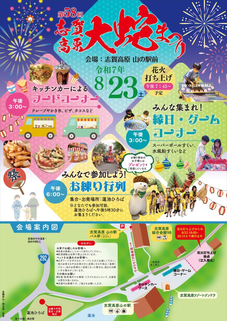 『しののい軽トラ市』詳細はこちら■8/23(土) 『第58回志賀高原大蛇まつり』(山ノ内町)