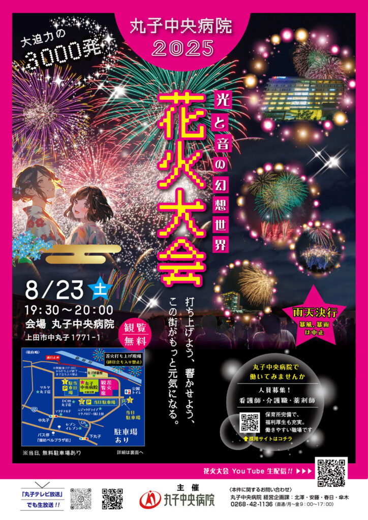 『魔法の美術館 光と遊ぶ超体験型ミュージアム』詳細はこちら■8/23(土) 『丸子中央病院 花火大会2025』(上田市)